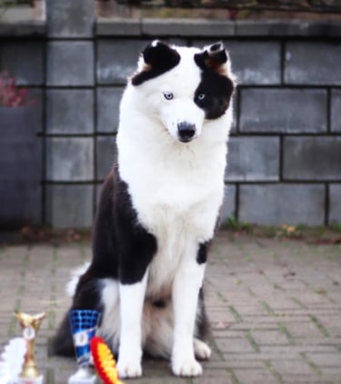 From the very first moment Panda arrived, we knew she was a star. She had a regal posture, always holding her head high and seeking attention from everyone. In the show ring she is the same — catching every glance, making sure all eyes are on her. At her very first show, her critique simply read: “Just a perfect dog.” And that is exactly who she is — our royalty, our star.