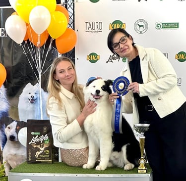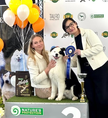 Since the first steps in show rings he proved us that we were right. He is still young but already he achieved so much: he is multiple Best in Show Baby, Puppy winner, Lithuanian and Polish Puppy Champion. He is continuing to follow his father footsteps and in World Dog Show 2025 in Helsinki got World Hope '25 title.